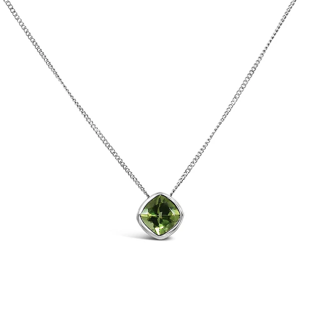 10KT White Gold 1.00 Carat TW Round and Baguette Diamond Pendant with Chain