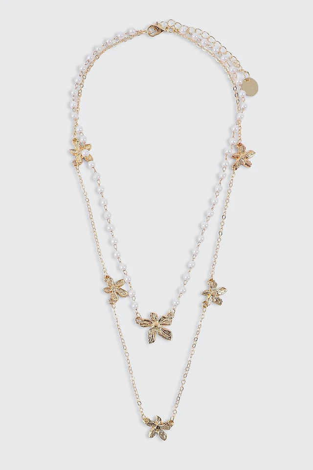 Ardene 13-Pack Pearl & Rose Bracelets in Gold