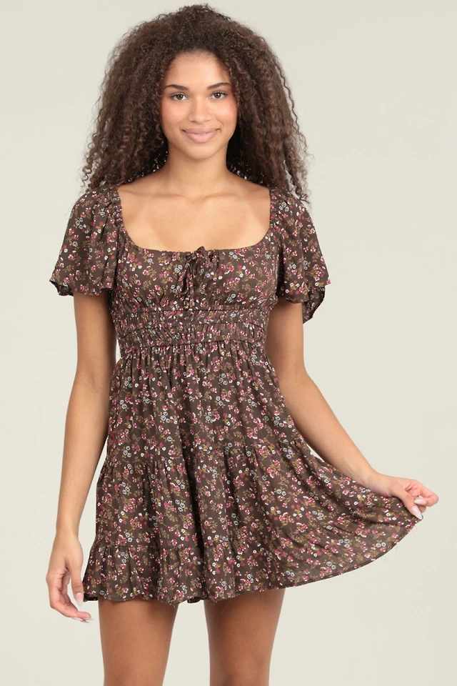 Ardene Smocked Hankerchief Hem Mini Dress in Black | Size