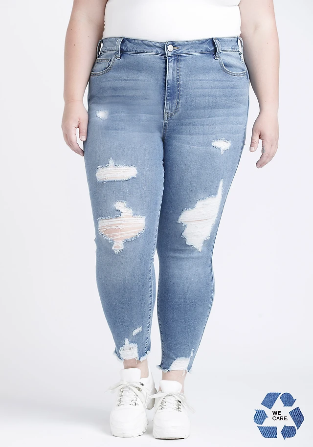 Women's Plus High Rise Destroyed Chewed Hem Ankle Skinny Jean
