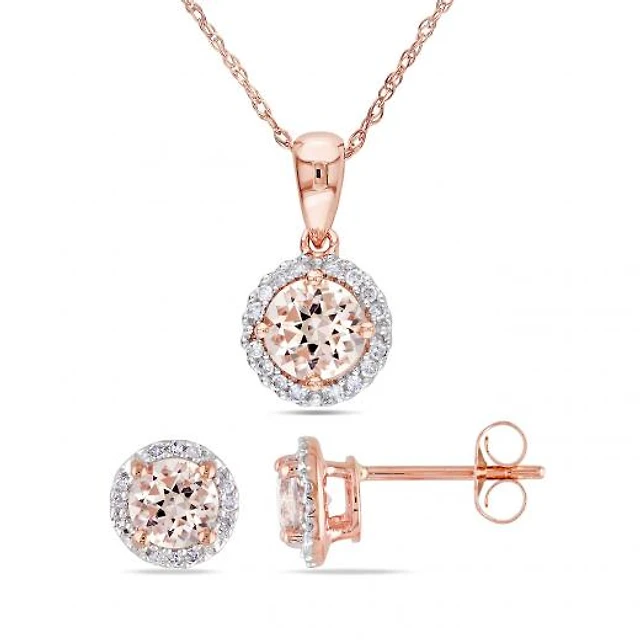 Julianna B 10K Rose Gold Morganite & Diamond Earrings and Pendant Set