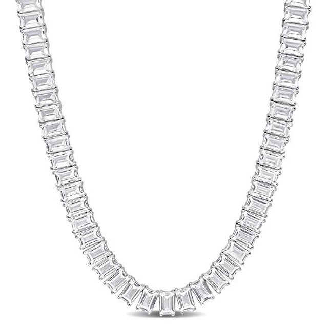 Oval Blue Lab-Created Sapphire Link Necklace in Sterling Silver