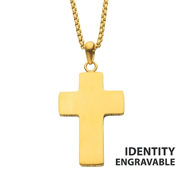 Stainless Steel Memorial Cross Pendant With Clear Cz & Steel Box Chain