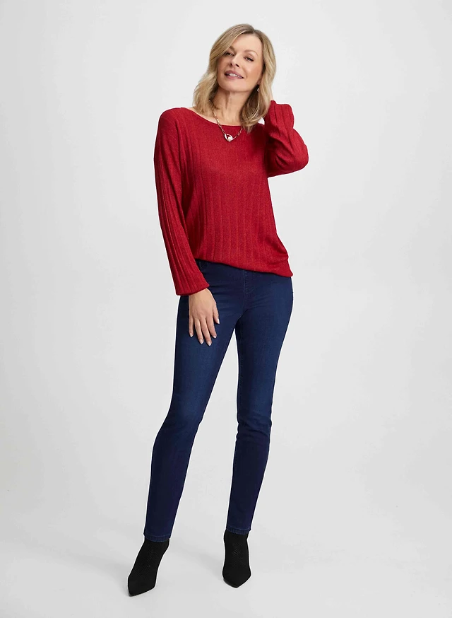 Rhinestone Detail Sweater & Slim Leg Jeans