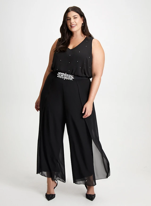 Rhinestone Motif Sweater & Slim Leg Jeans