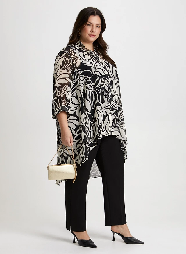 Asymmetric Leaf Print Blouse & Slim Leg Pants