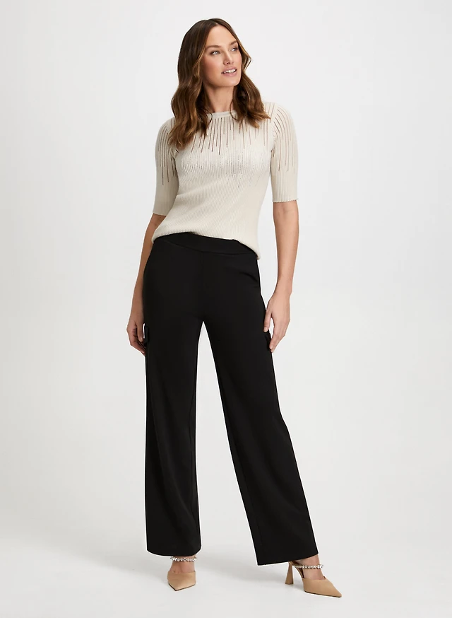 Knit Cardigan & Modern Fit Wide Leg Pants