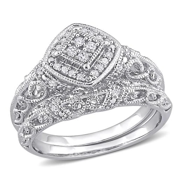 Julianna B Sterling Silver 0.19CTW Vintage Design Diamond Bridal Set
