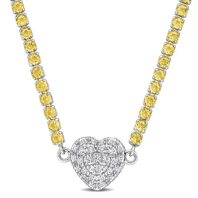Julianna B Sterling Silver Citrine and Created White Sapphire Heart 17" Necklace