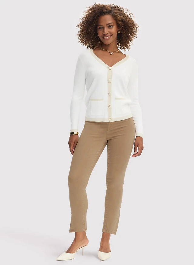 Pointelle Stitch Cardigan & Flare Leg Jeans