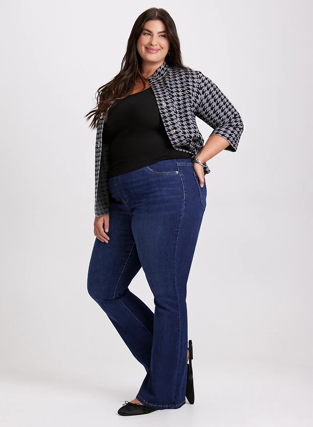 Houndstooth Cardigan & Flare Leg Jeans