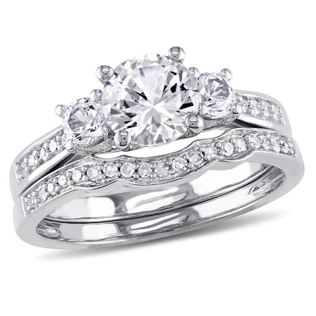 Julianna B 10K White Gold Created Sapphire & Diamond Bridal Set