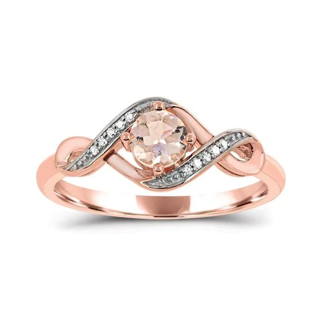 3.5mm Morganite and Diamond Accent Twine Promise Ring Sterling Silver with Rose Rhodium