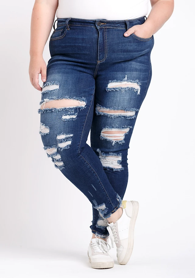 Women's High Rise Destroyed Cuffed Straight Jeans