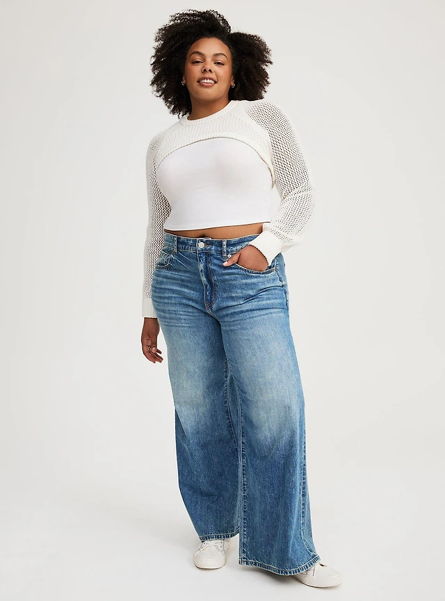 Celebrity Pink Medium Wash Mid-Rise Wide-Leg Jean