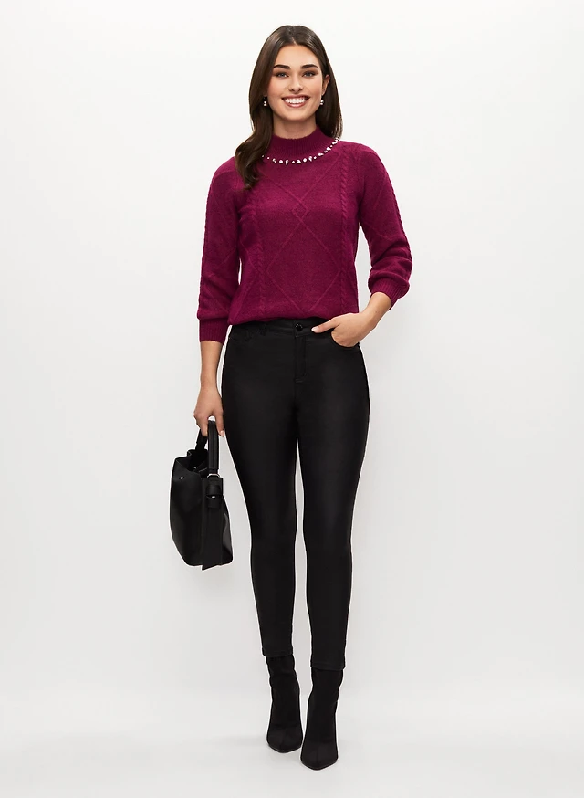 Women's Dark Wash 2 Button Sequins Patch Skinny Jeans