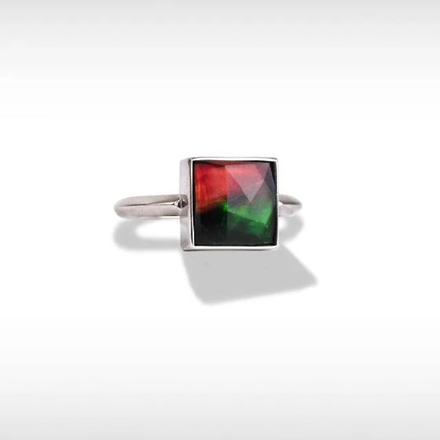 KORITE ESSENTIALS Sterling Silver Square Ammolite Ring
