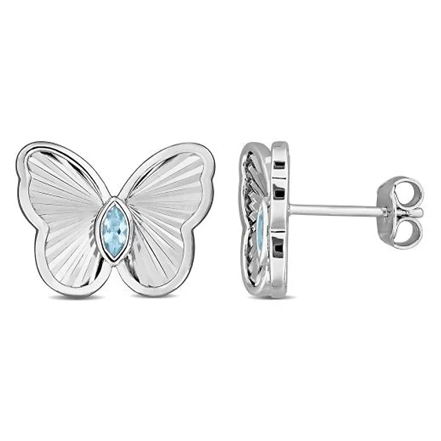 White Lab-Created Sapphire Frame Stud Earrings in Sterling Silver