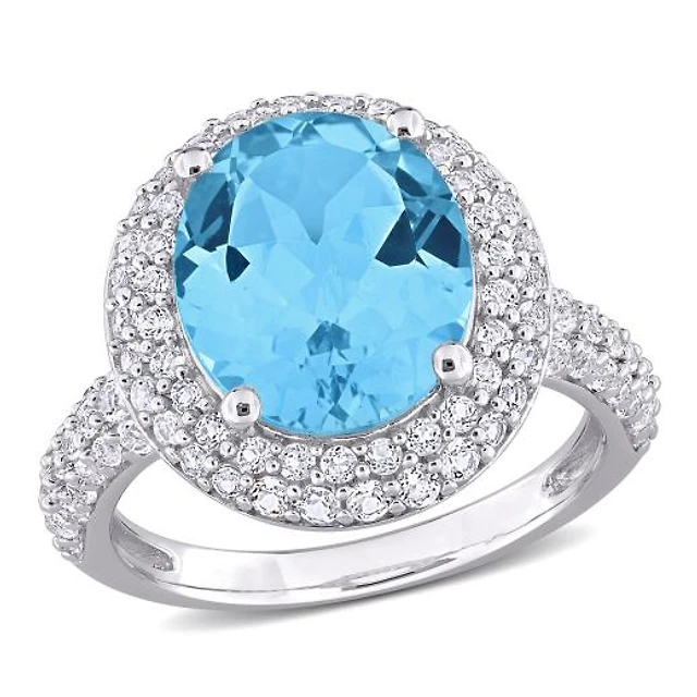 Ring with Blue Topaz and .08 Carat TW of Diamonds in 10kt White Gold