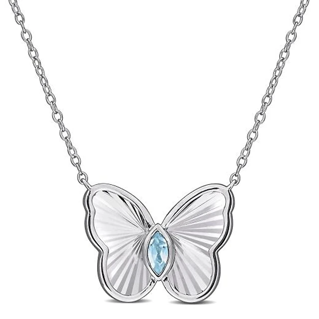 Julianna B Sterling Silver Sky Blue Topaz and Black Sapphire Ring