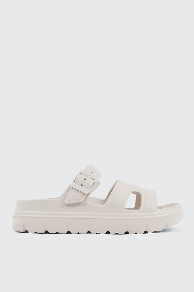 Ardene Chunky Slides with Buckle Detail in Off-White | Size | Faux Leather