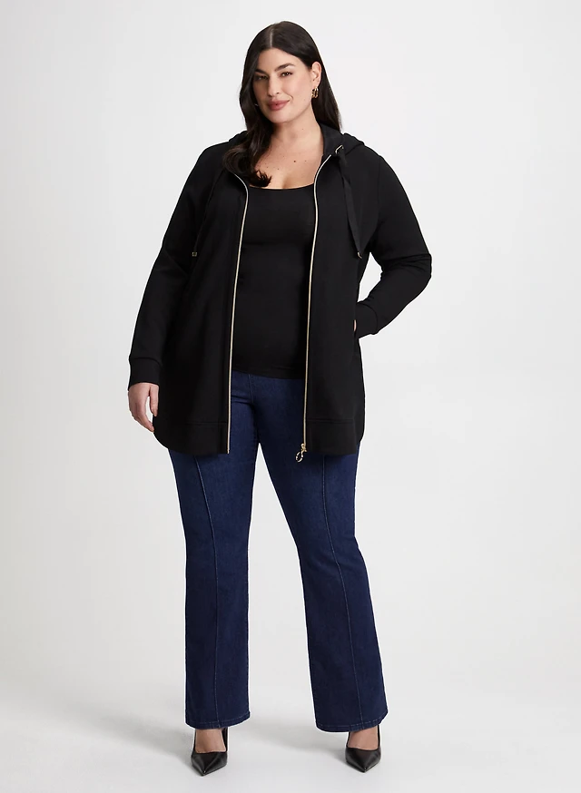 Sleeveless Horseshoe Neckline Top & Embellished Hem Jeans
