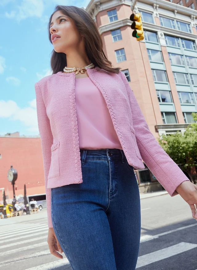 Stitch Detail Cardigan, Sleeveless Blouse & Slim Leg Jeans