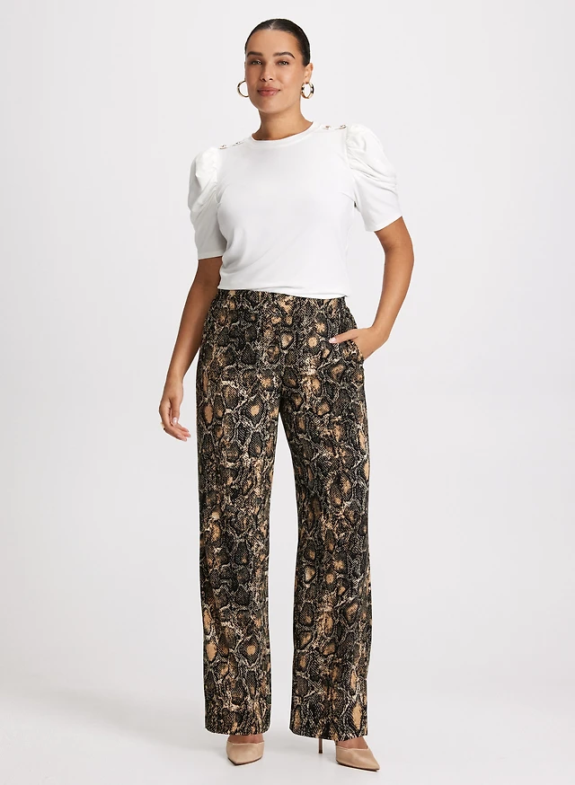 Puff Sleeve Top & Snake Print Pants