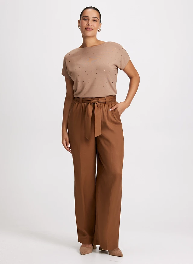Rhinestone Detail T-Shirt & Wide Leg Tencel Pants