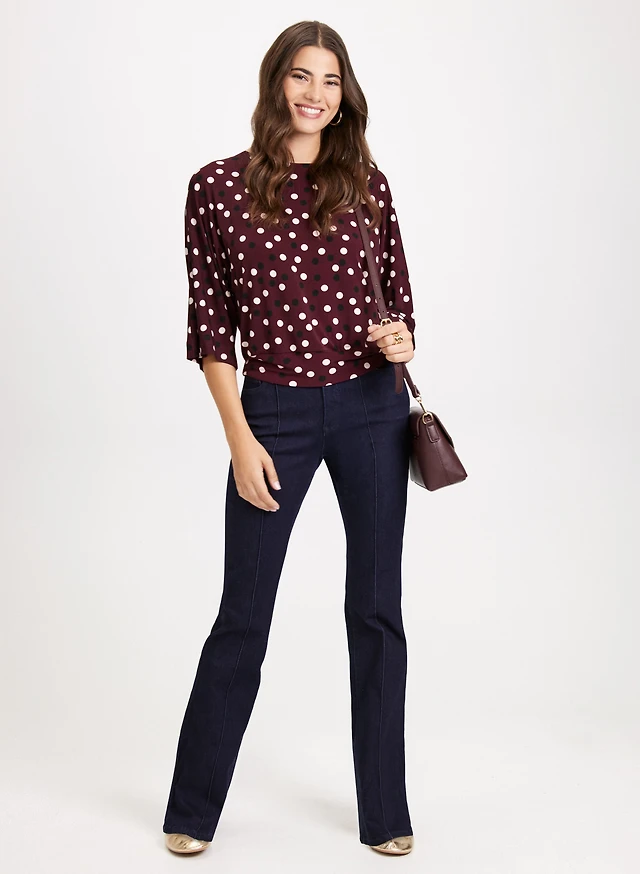 Polka Dot Elbow Sleeve Top & Flared Jeans