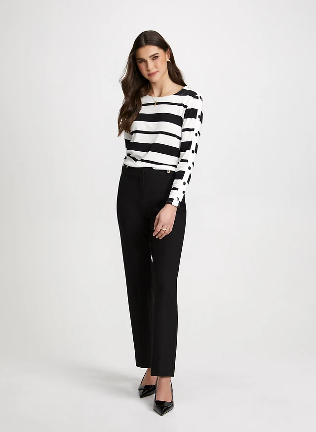 Lace Trim Stripe Motif Top & Straight Leg Pants