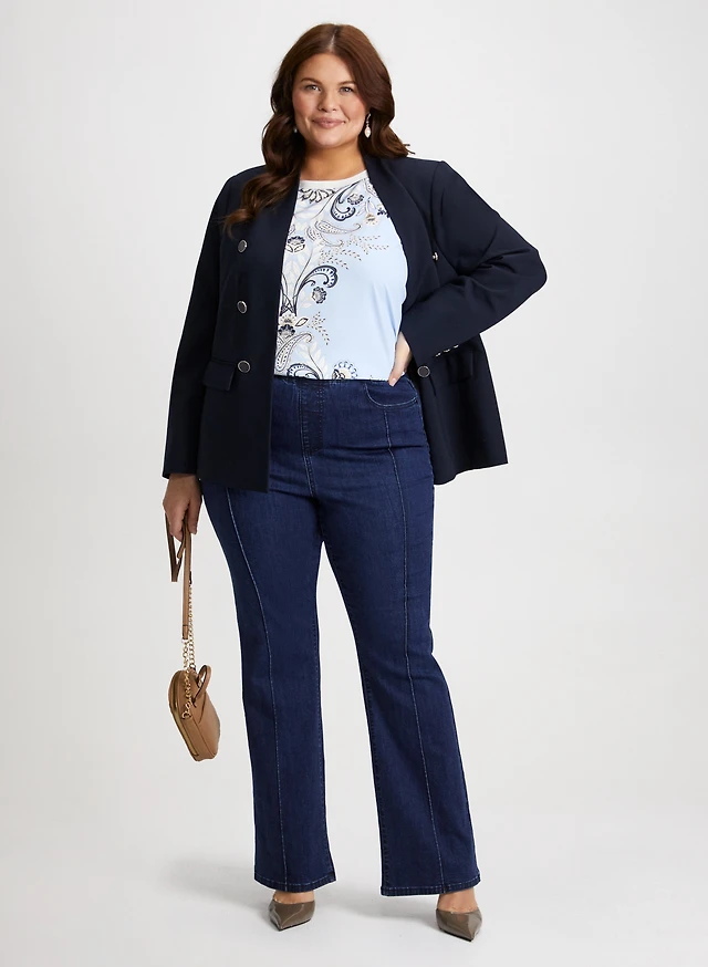 Boyfriend Style Button Cuff Blazer & Pull-On Bootcut Jeans