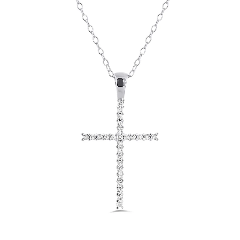 10K White Gold 0.10CTW Diamond Cross Pendant