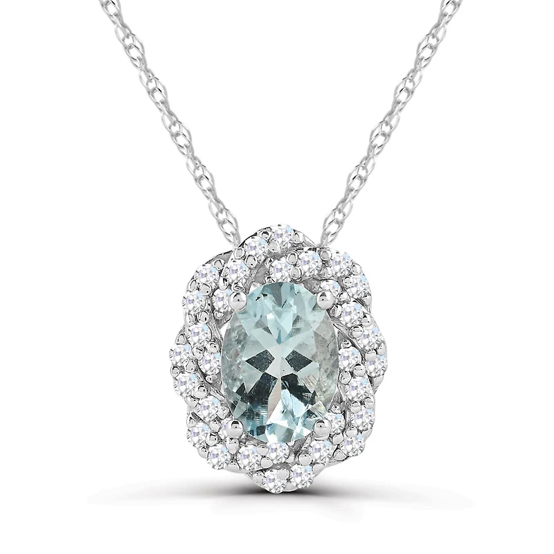 10K White Gold 18" Aquamarine and White Sapphire Pendant