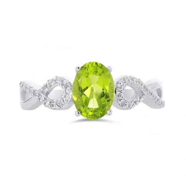 10K White Gold Peridot 0.03CTW Diamond Ring