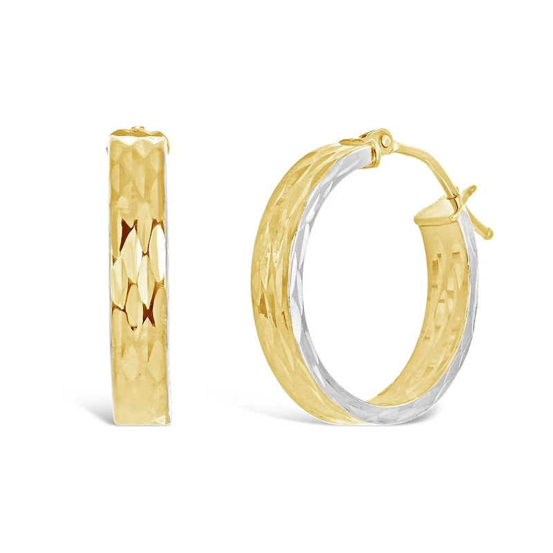 10K Yellow and White Gold Diamond Cut Hoops