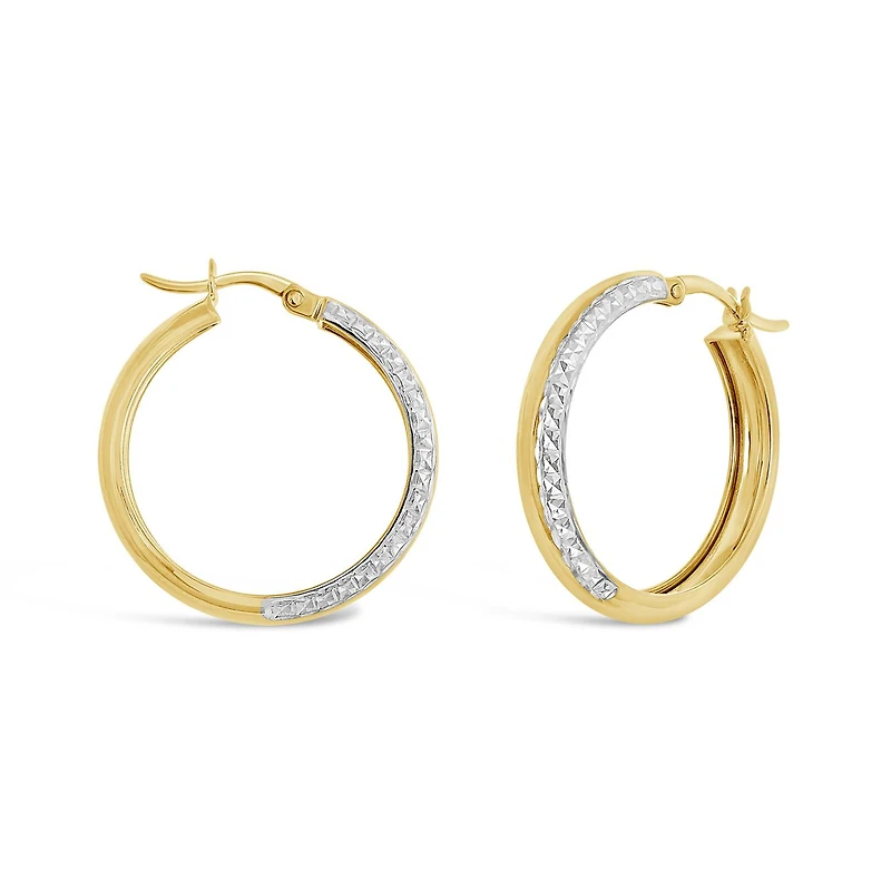 10K Yellow and White Gold Diamond Cut Round Hoops