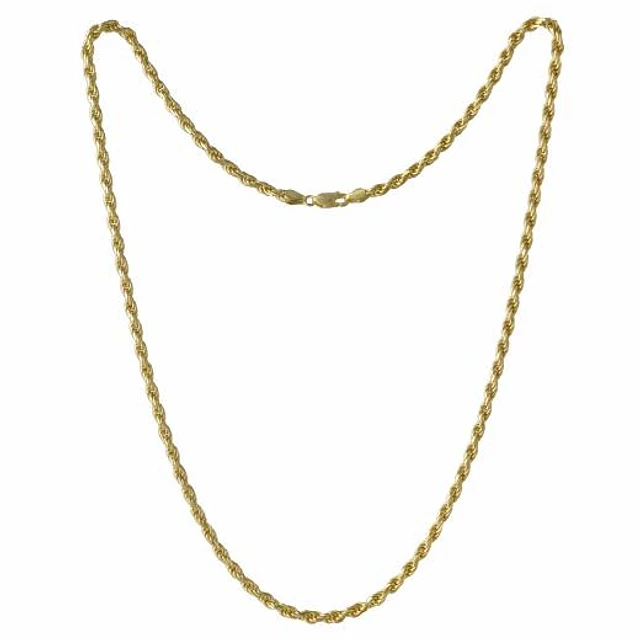 14K Yellow Gold 24" Semi-Solid Diamond Cut Rope Chain