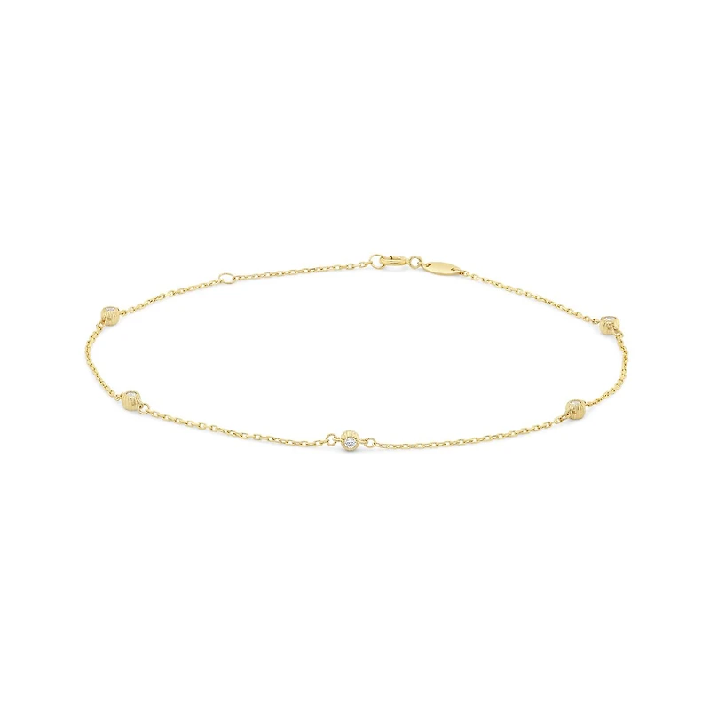 Embrace the opulence of 10K yellow gold and the sparkling allure of cubic zirconia with this delightful anklet, and let it become a whimsical addition to your jewellery collection. Whether you're strolling along the beach or dancing the night away, this anklet adds a touch of sophistication to your every movement.