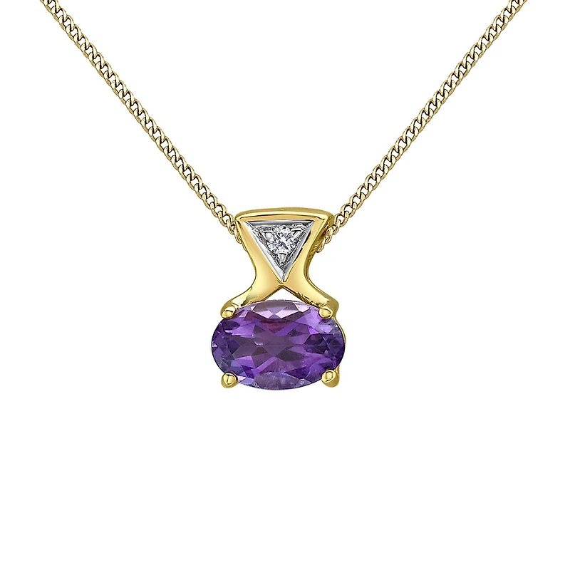 10K Yellow Gold Amethyst & Diamond 18" Pendant