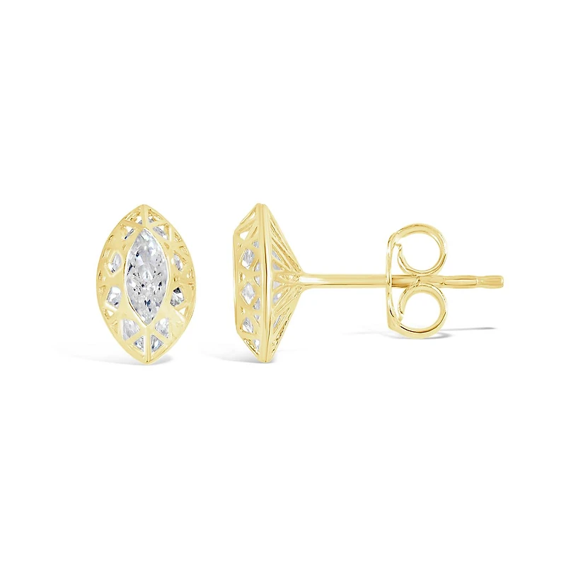 10K Yellow Gold Cubic Zirconia Oval Shape Stud Earrings