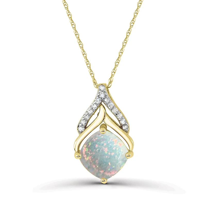 10K Yellow Gold Opal and Diamond 18" Pendant