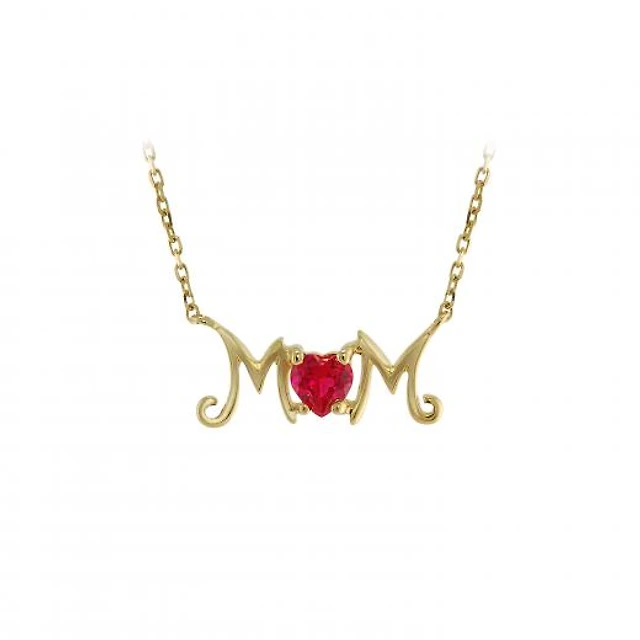 10K Yellow Gold Ruby Mom Necklace