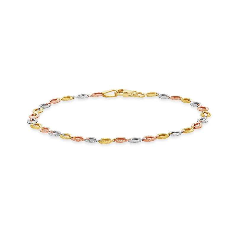 10K Yellow White and Rose Gold Diamond Cut Links Bracelet