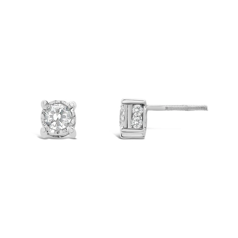 A timeless classic, these elegant 1ctw diamond studs sparkle in 14k white gold and are secured with threaded posts and screw backs.