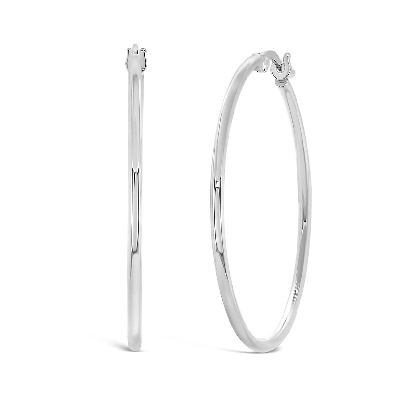 14K White Gold 1.5mm x 30mm Round Tube Polished Hoops