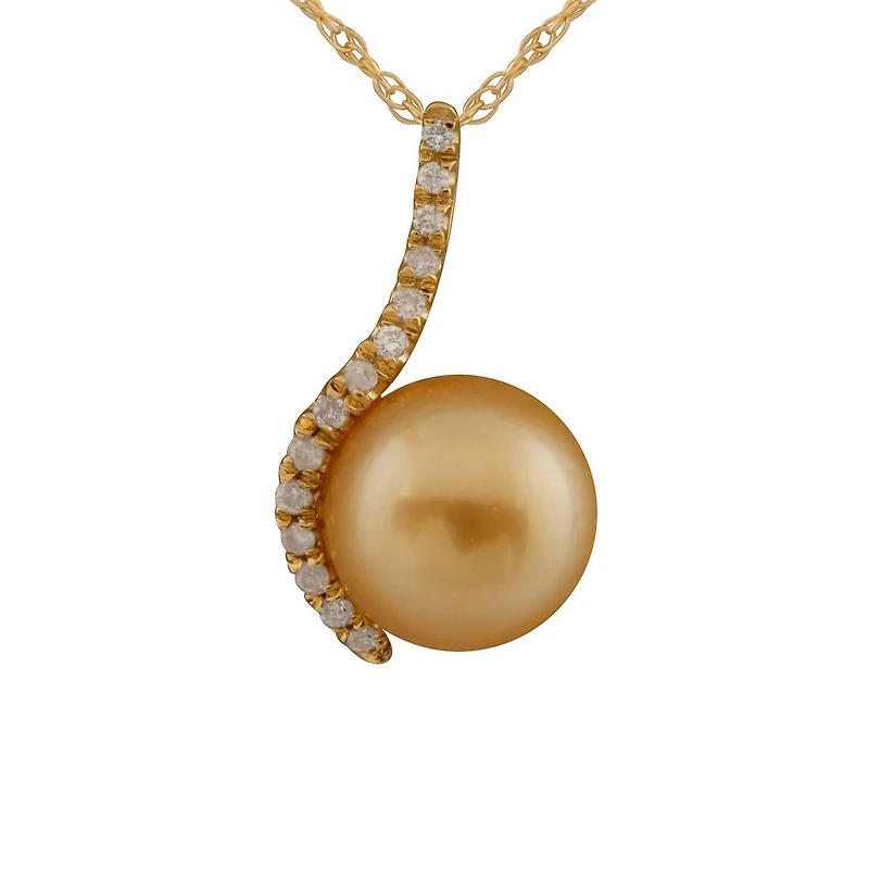 14K Yellow Gold 10mm Golden South Sea Pearl & Diamond Pendant