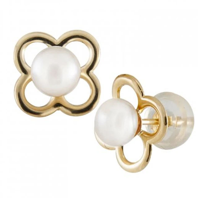 14K Yellow Gold 4-4.5mm White Freshwater Pearl Earrings