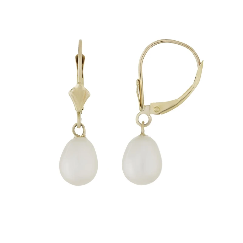 14K Yellow Gold 6.5-7mm Pearl Leverback Earrings