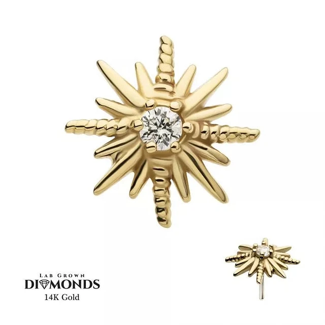 14Kt Yellow Gold Threadless Sunburst Top with Center 6-Prong Round Lab-Grown Diamond